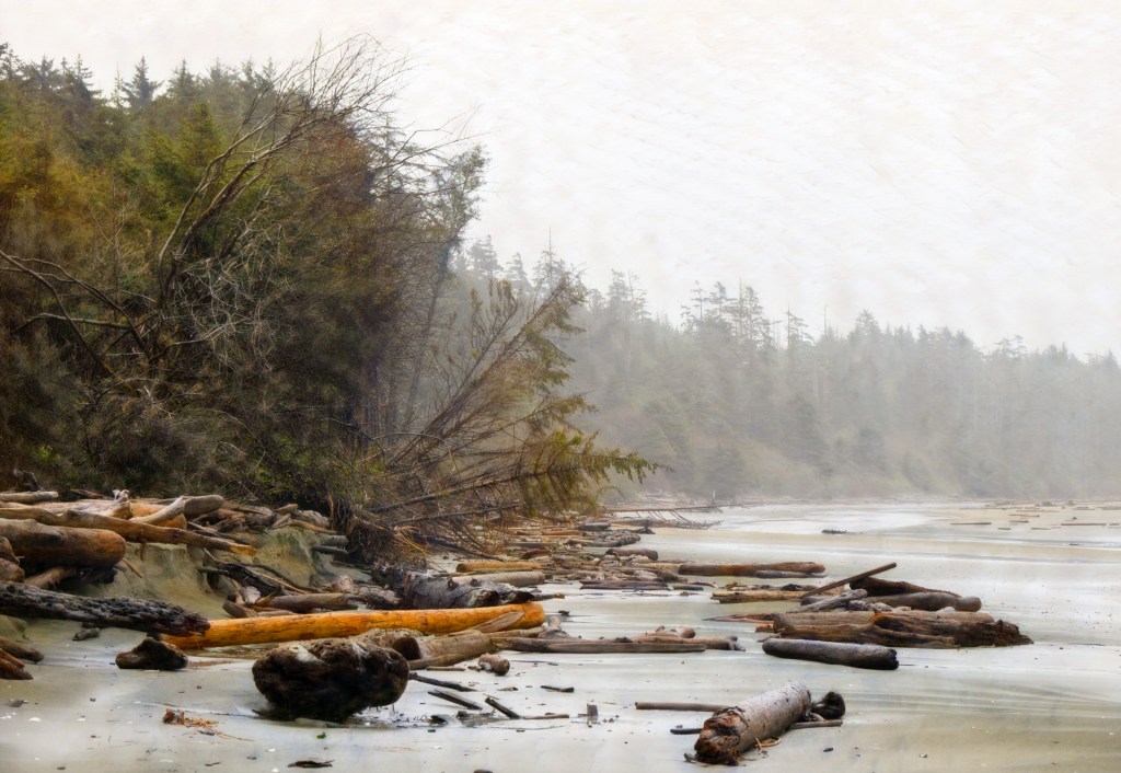 Shore lines are rugged with a lot of natural debris washed up upon its beaches. Sand banks are eroded away from the heavy rain and storm surges. Some trees succumb. Driftwood is everywhere.